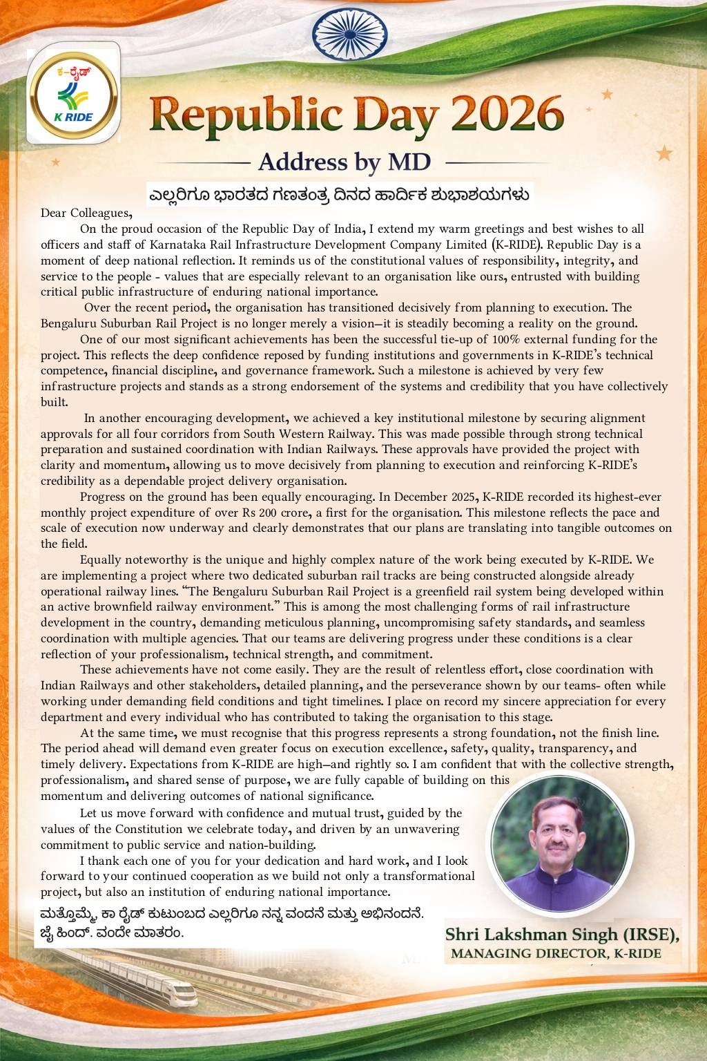 A JV of Govt. of Karnataka & Ministry of Railways
