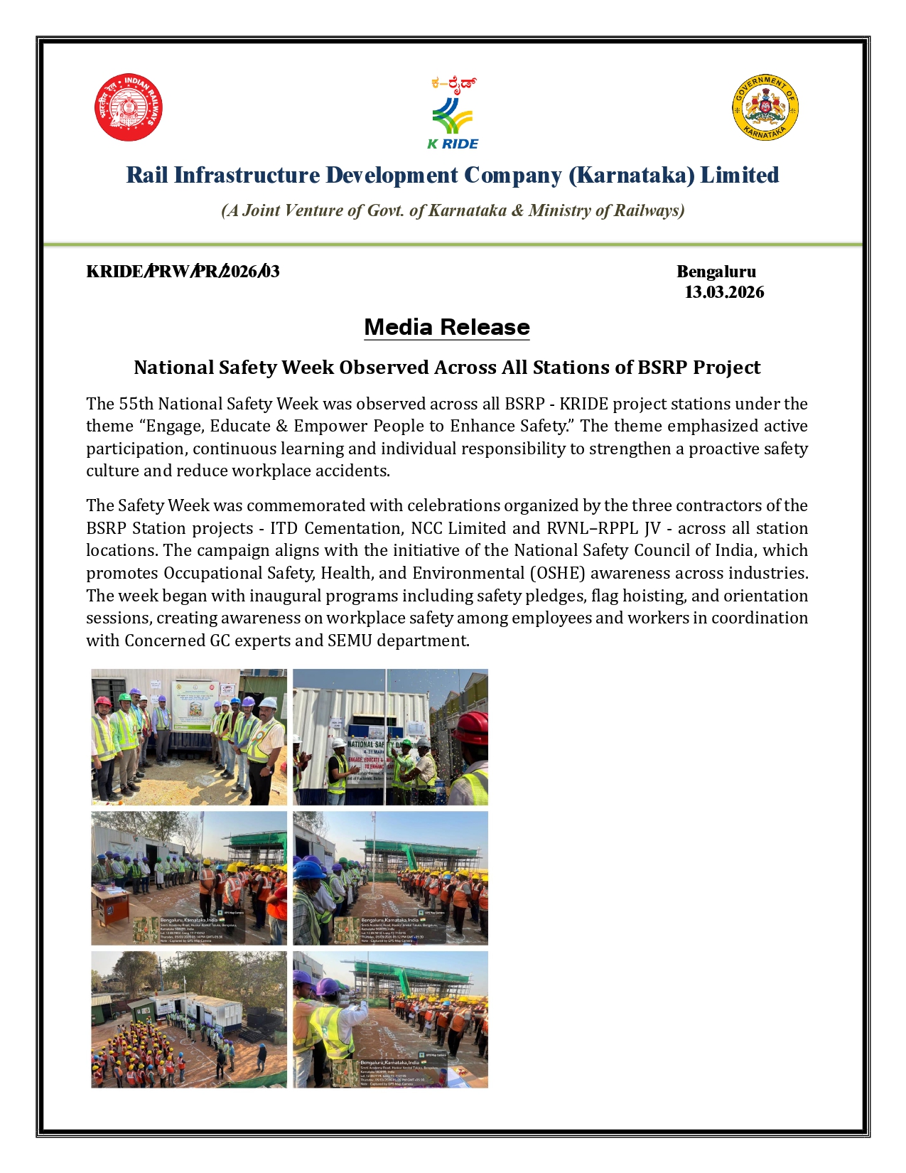 National Safety Week Observed Across All Stations of BSRP Project